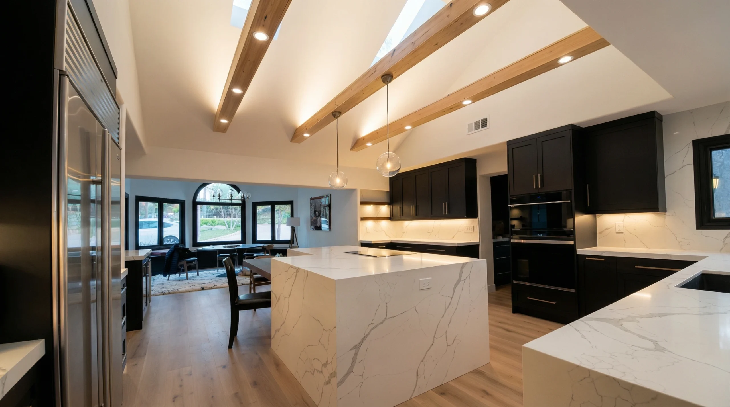 Their main goal was simple: tear down the visual barriers and build one massive, continuous room where the family could gather. They wanted a bright, modern look with a subtle coastal vibe, anchored by a huge island that could double as a dining table and a prep station. They also needed floors that could handle kids, pets, and heavy daily use without scratching or warping.