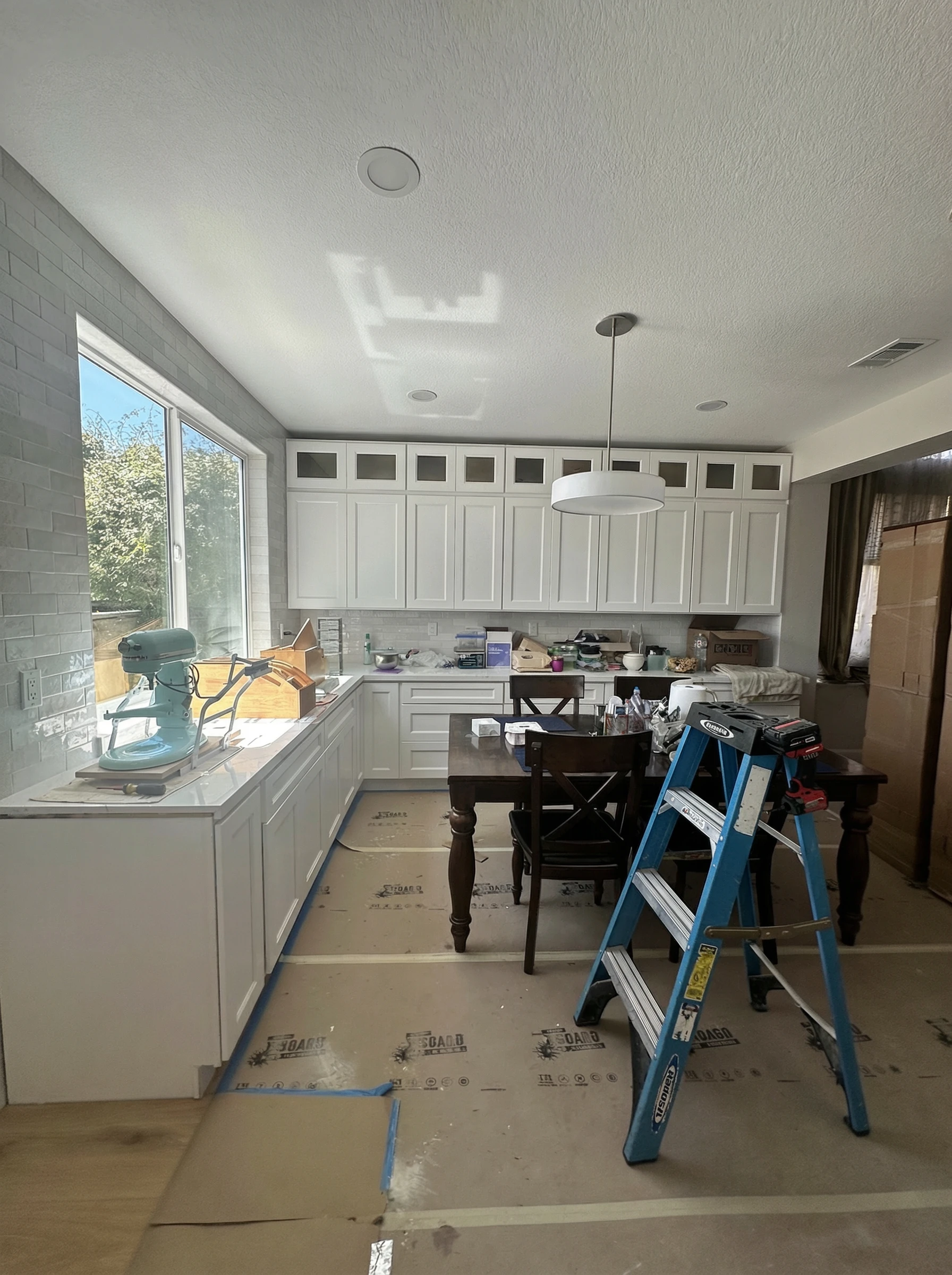 • The Statement Backsplash: They splurged a little on the striking blue glass subway tiles and custom glass pendant lights to give the room its unique, personalized character.