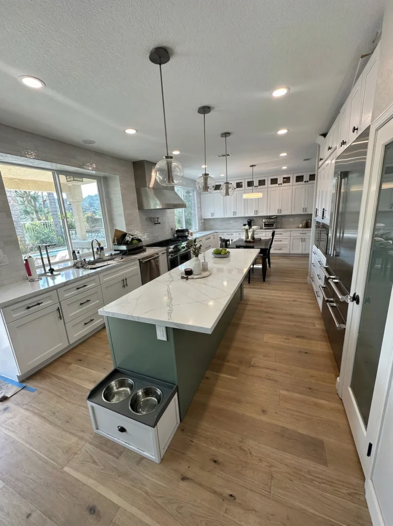 When they visited our Anaheim showroom, things clicked. Because we supply the cabinets, stone, and flooring directly and handle the installation ourselves, we were able to give them the high-end look they wanted without the retail markup. It also gave them peace of mind knowing one single team was responsible for the whole transformation, from demolition to the final polish.